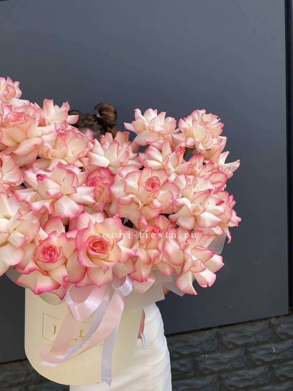 Для заказа товара "31 французская роза Джумилия в боксе" с доставкой в Иваново нажмите в корзину