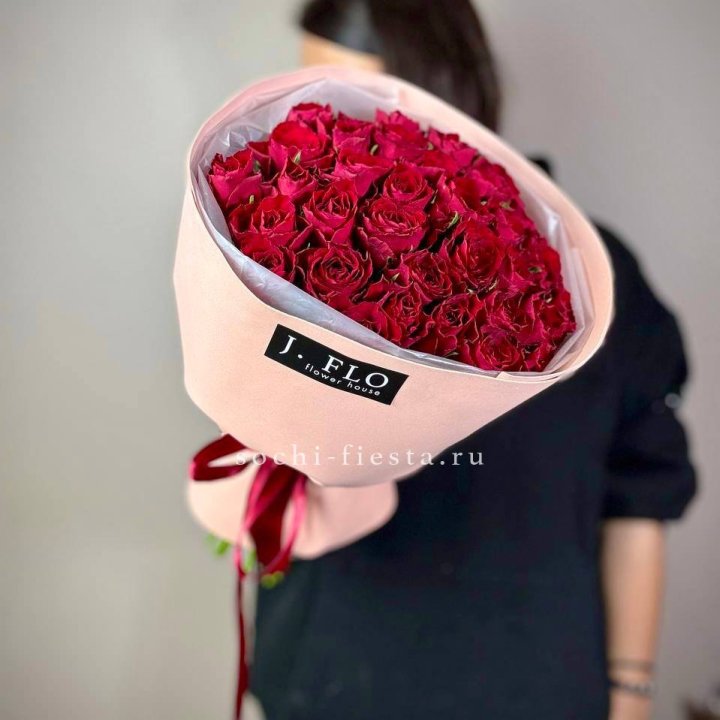 - Монобукет из роз — классика, нечётное число, аккуратная упаковка.