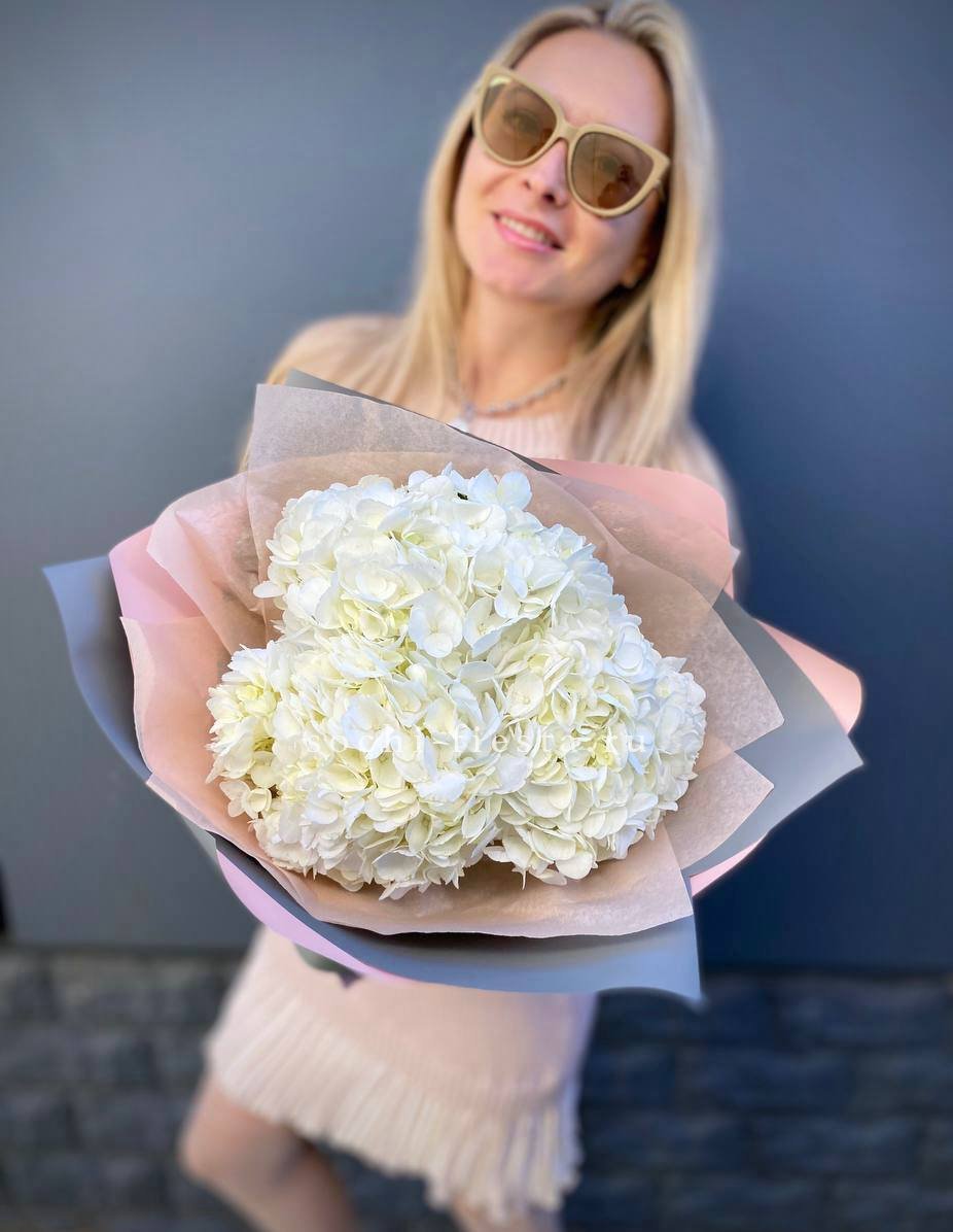 Букет из трёх белых гортензий