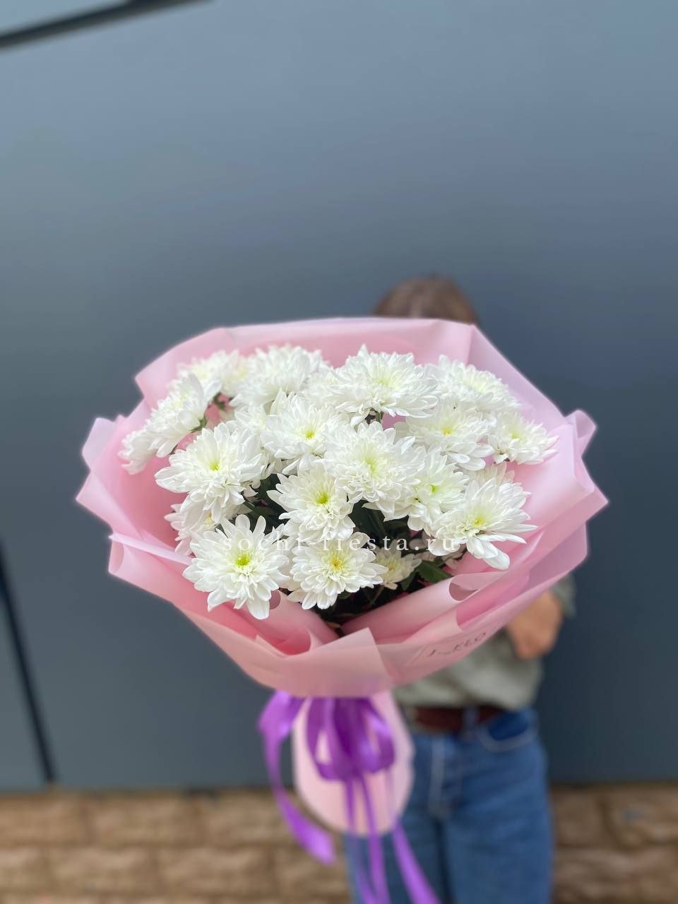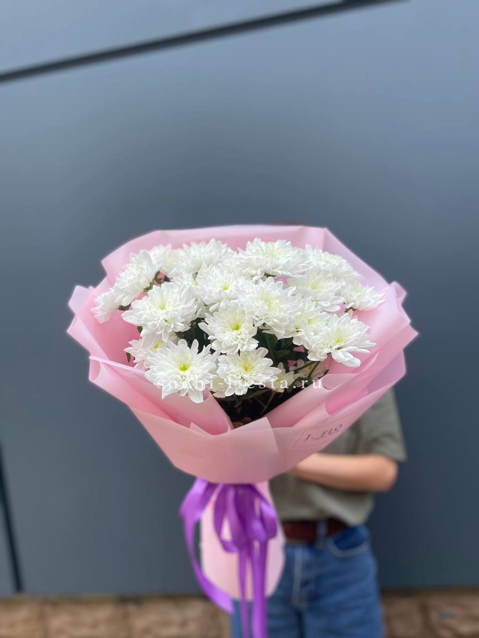 хризантема кустовая - 19 веток, лента, дизайнерская пленка.
