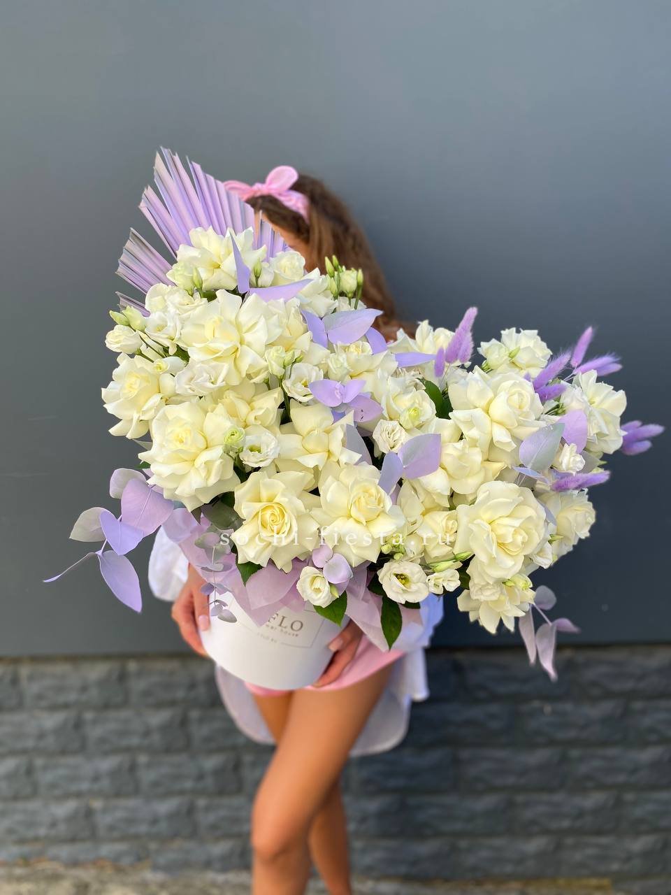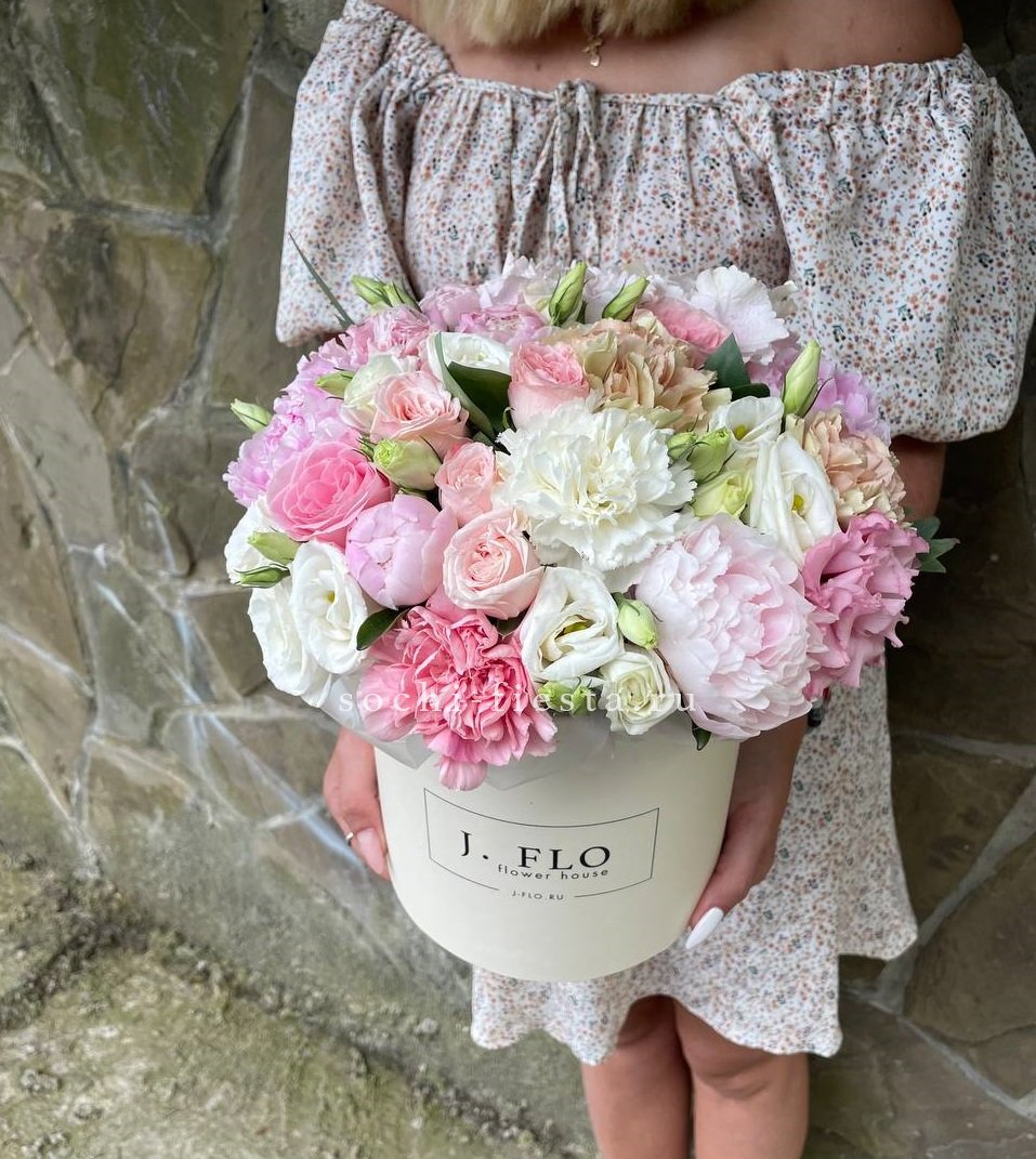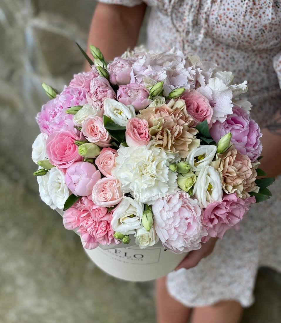 Настоящий взрыв цвета и позитива! Эта пышная и многосоставная композиция в стильной коробке притягивает взгляды богатством форм и оттенков — от нежно-розового до насыщенного белого. Это не просто цветы, а целая история о радости, празднике и восхищении. Подарок, который гарантированно произведет яркое впечатление и останется в памяти надолго.