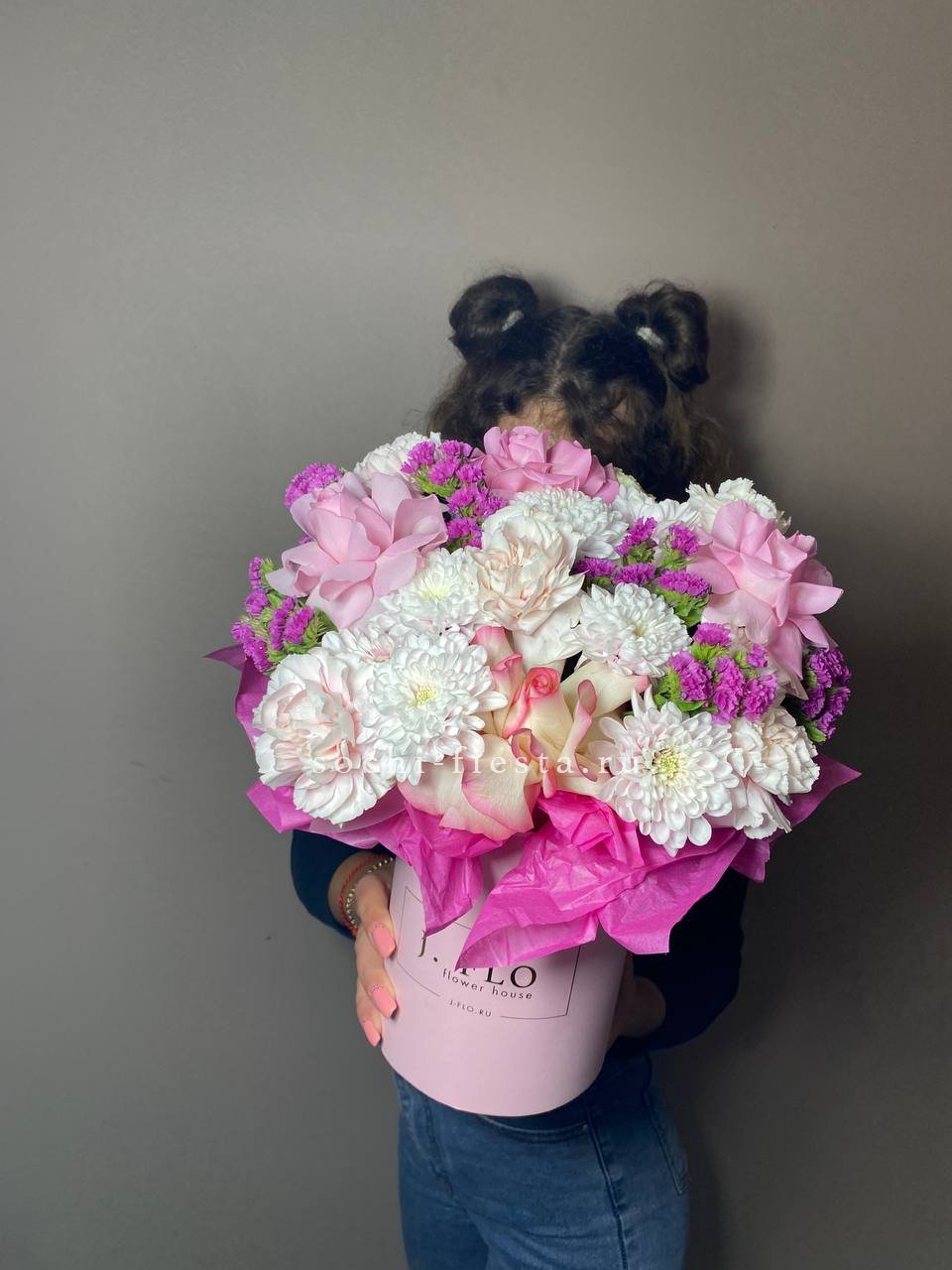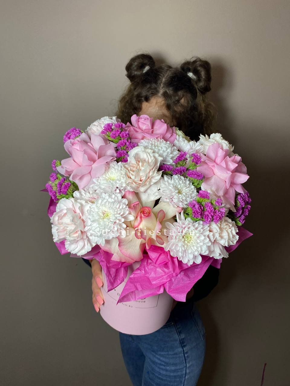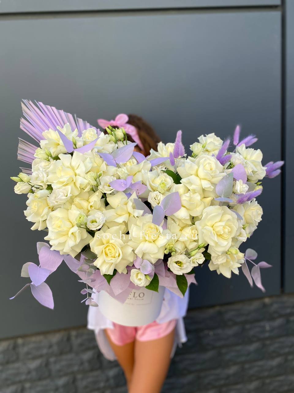Настоящий взрыв цвета и позитива! Эта пышная и многосоставная композиция в стильной коробке притягивает взгляды богатством форм и оттенков — от нежно-розового до насыщенного белого. Это не просто цветы, а целая история о радости, празднике и восхищении. Подарок, который гарантированно произведет яркое впечатление и останется в памяти надолго.
