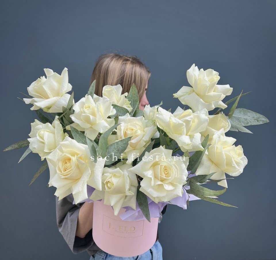 пионовидная кустовая роза, хлопок, одноголовая роза, кустовая хризантема, ковыль(стифа), эвкалипт, бокс D25.