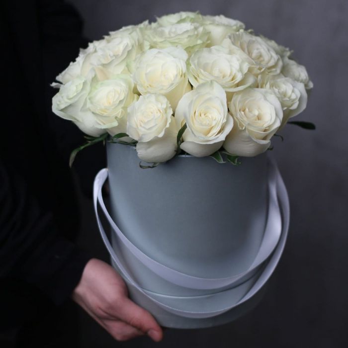 бокс, белая роза, розовая роза, эустома, гортензия, оазис.
