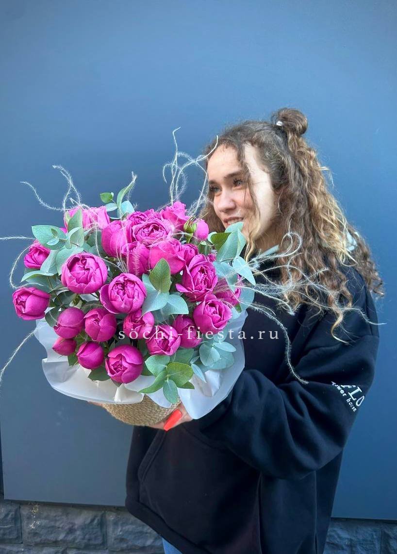 Для заказа товара "Пионовидные розы в джутовом кашпо " с доставкой в Иваново нажмите в корзину