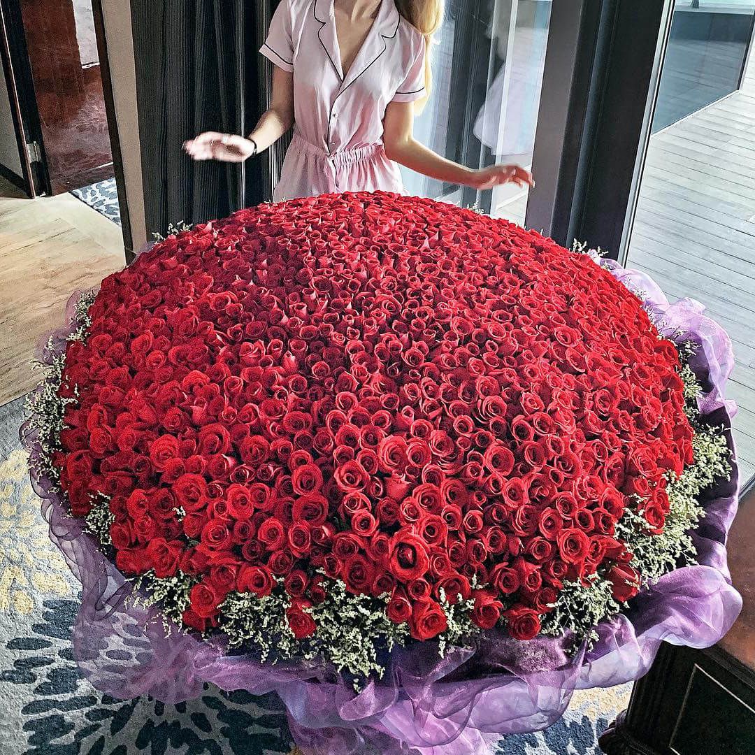 Пятьсот пять алых бутонов собраны в масштабную корзину, которая заполняет пространство цветом и объемом. Это композиция, которая говорит сама за себя своим количеством и насыщенностью.