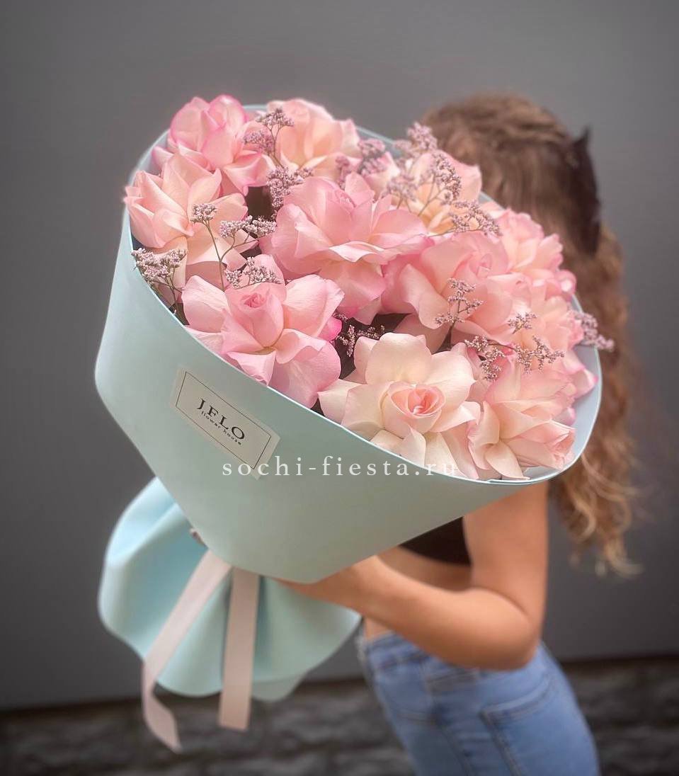 11 французских роз, лимониум, дизайнерская упаковка.