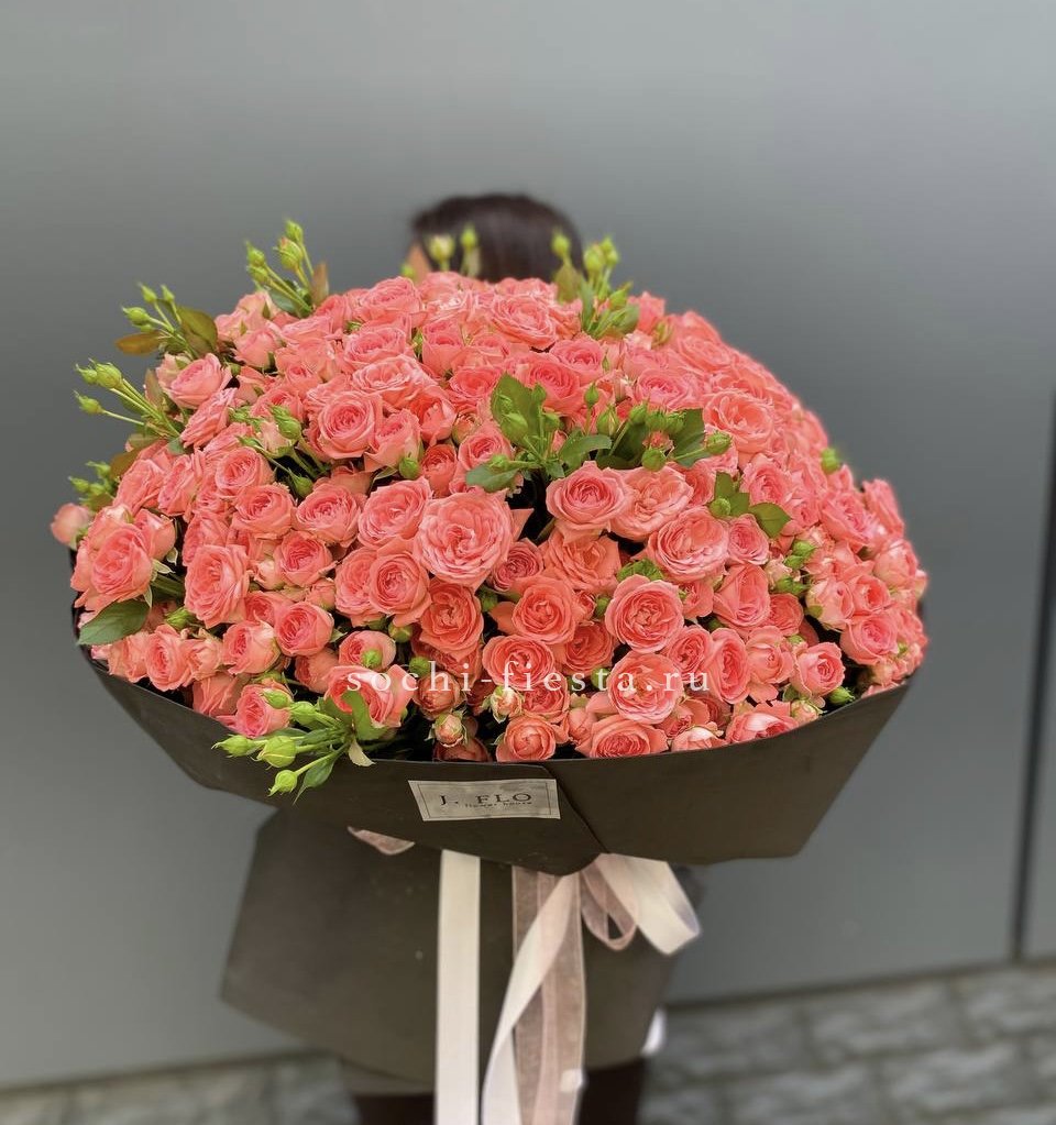 101 кустовая роза Барбадос, лента, упаковка.