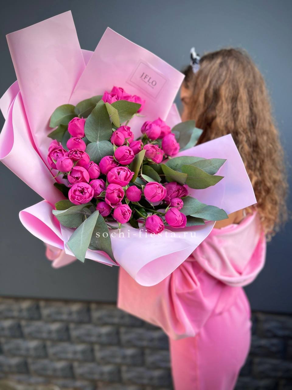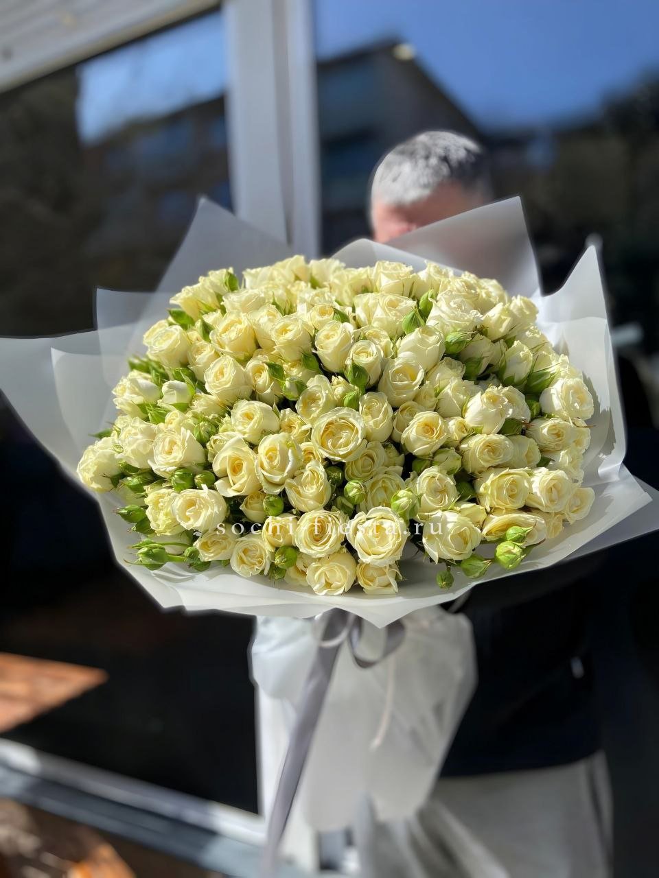 15 кустовых роз спрей, лента, упаковка на выбор.