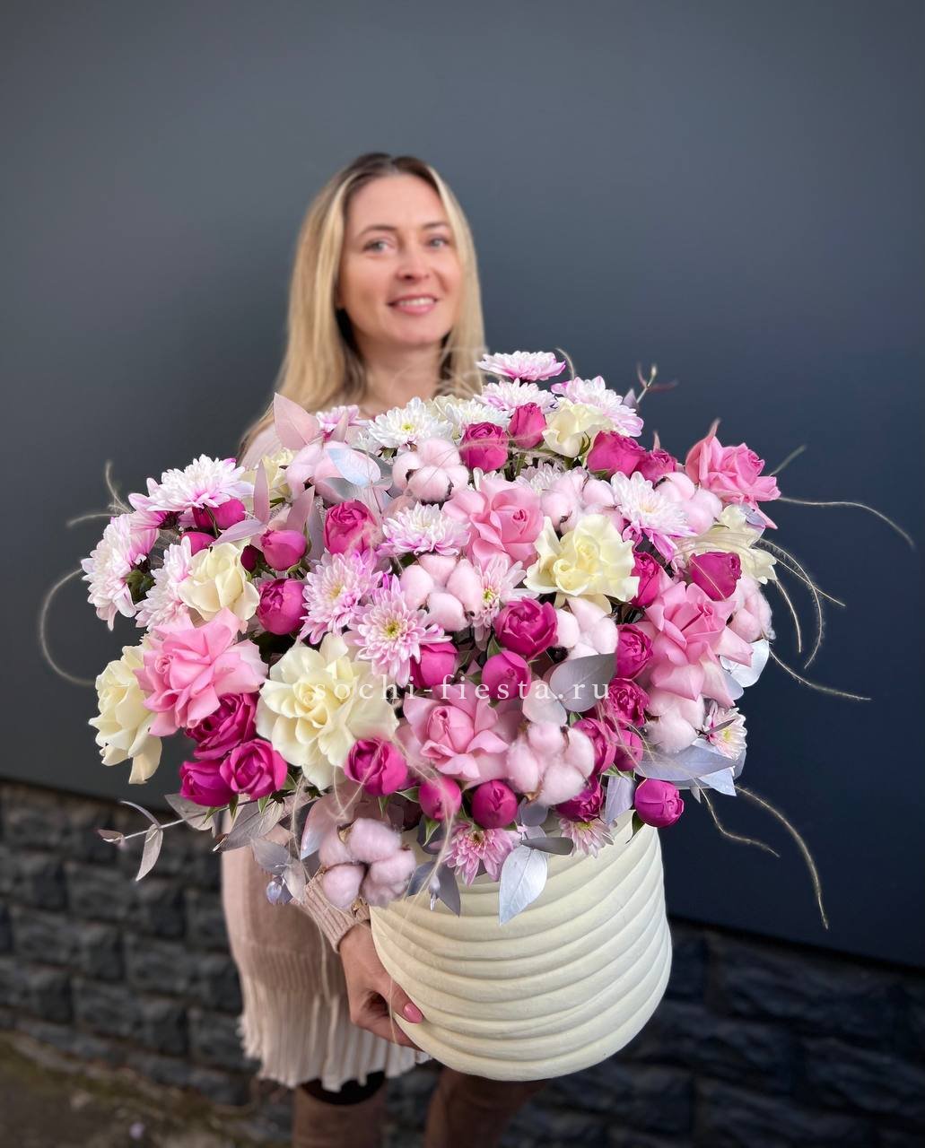 Мы работаем только со свежими цветами — букеты радуют от 7 до 14 дней и дольше при правильном уходе.