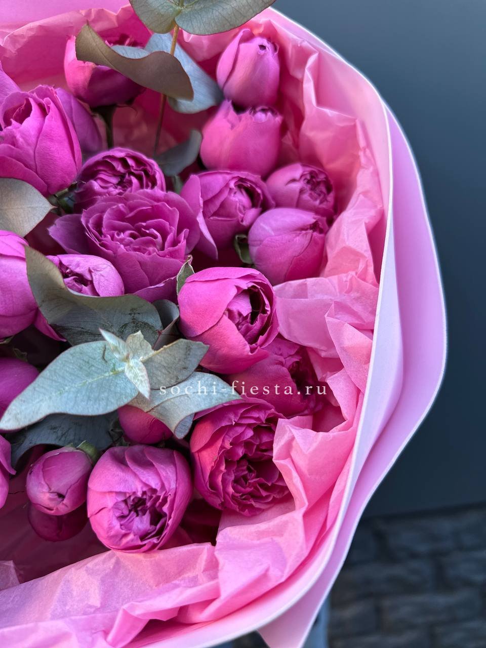 пионовидные розы мисти,  хлопка, эвкалипта, оформления.