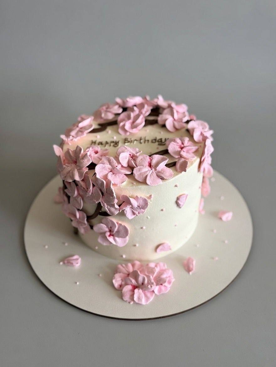 Весенний бенто-торт в бело-розовых тонах с акцентом на праздничную дату. Кремовая текстура создаёт лёгкий рельеф и цветочные мотивы. Два вкуса начинки на выбор.