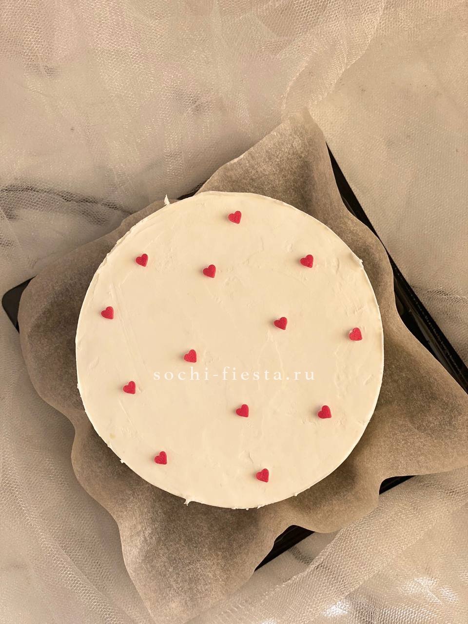 Персональный десерт с графичным рисунком сердец и плотной кремовой поверхностью. Лаконичная форма и выразительный декор делают его запоминающимся. Ручная работа с возможностью выбора начинки.